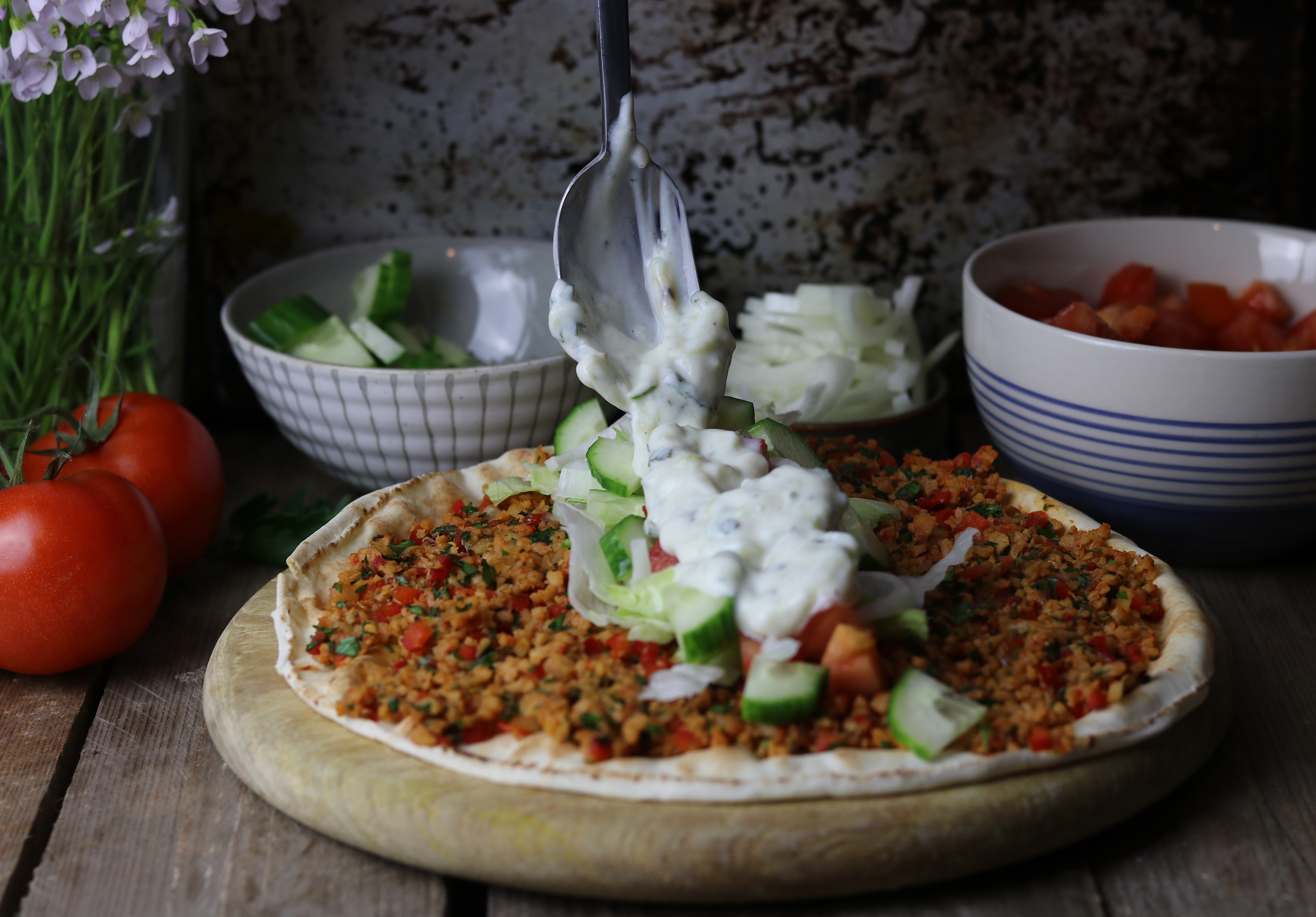 Die Bandbreite der Mezze-Gerichte ist beeindruckend und reicht von warmen bis zu kalten Speisen und veganes Tzatziki passt natürlich sehr gut auf ein Mezze Board. Aber auch gegrillte Auberginenröllchen, Falafel, Cous Cous Salat, gefüllte Weinblätter oder andere Dolma, Piyaz, Taboulé oder Baba Ganoush.