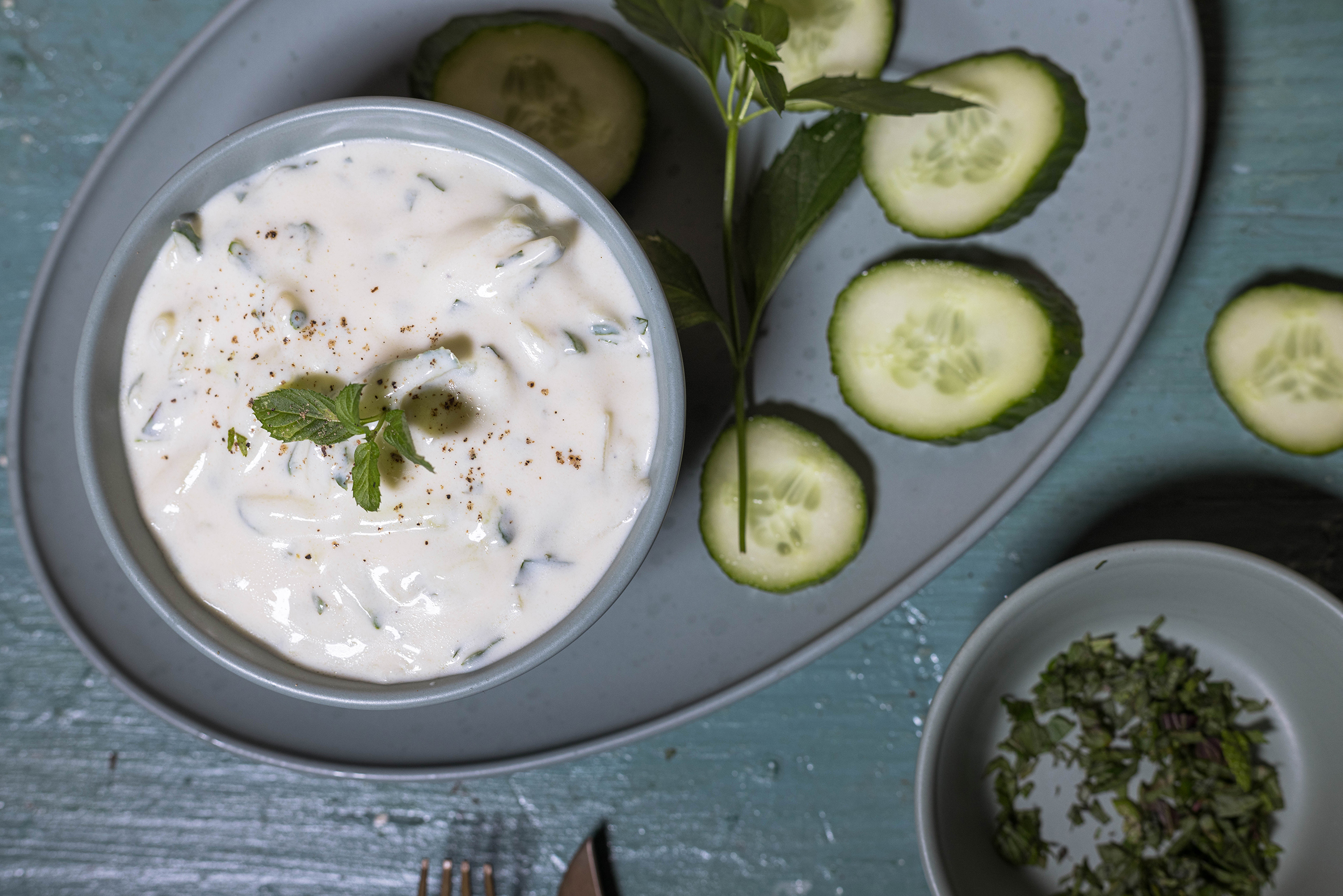 Veganes Tzatziki passt sehr gut zu vielen Gerichten