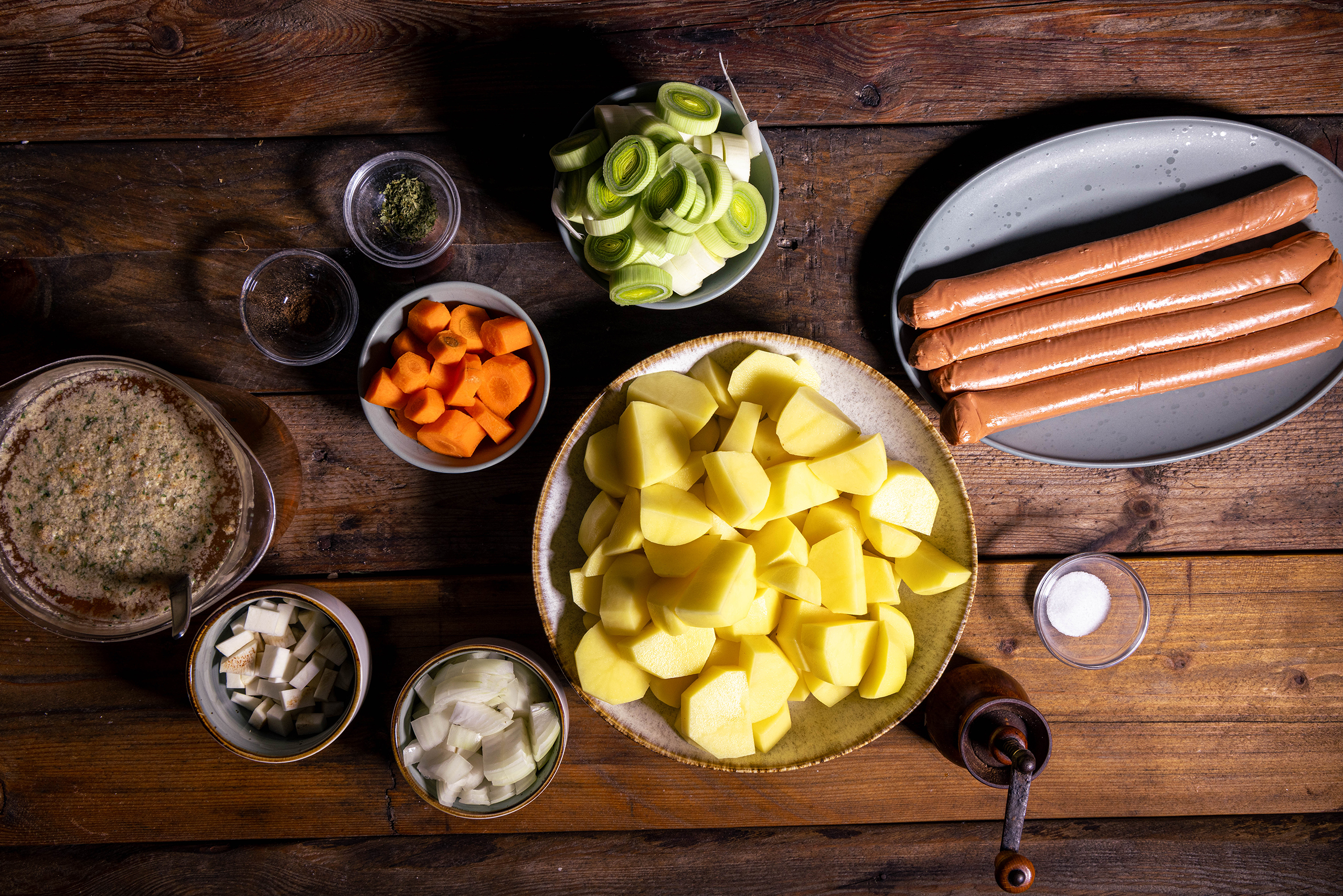 1. Alle Zutaten für die vegane Kartoffelsuppe wie von Oma.