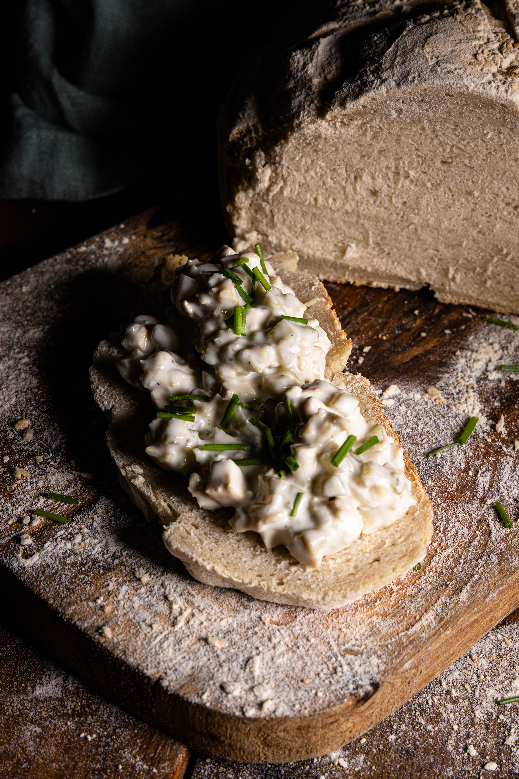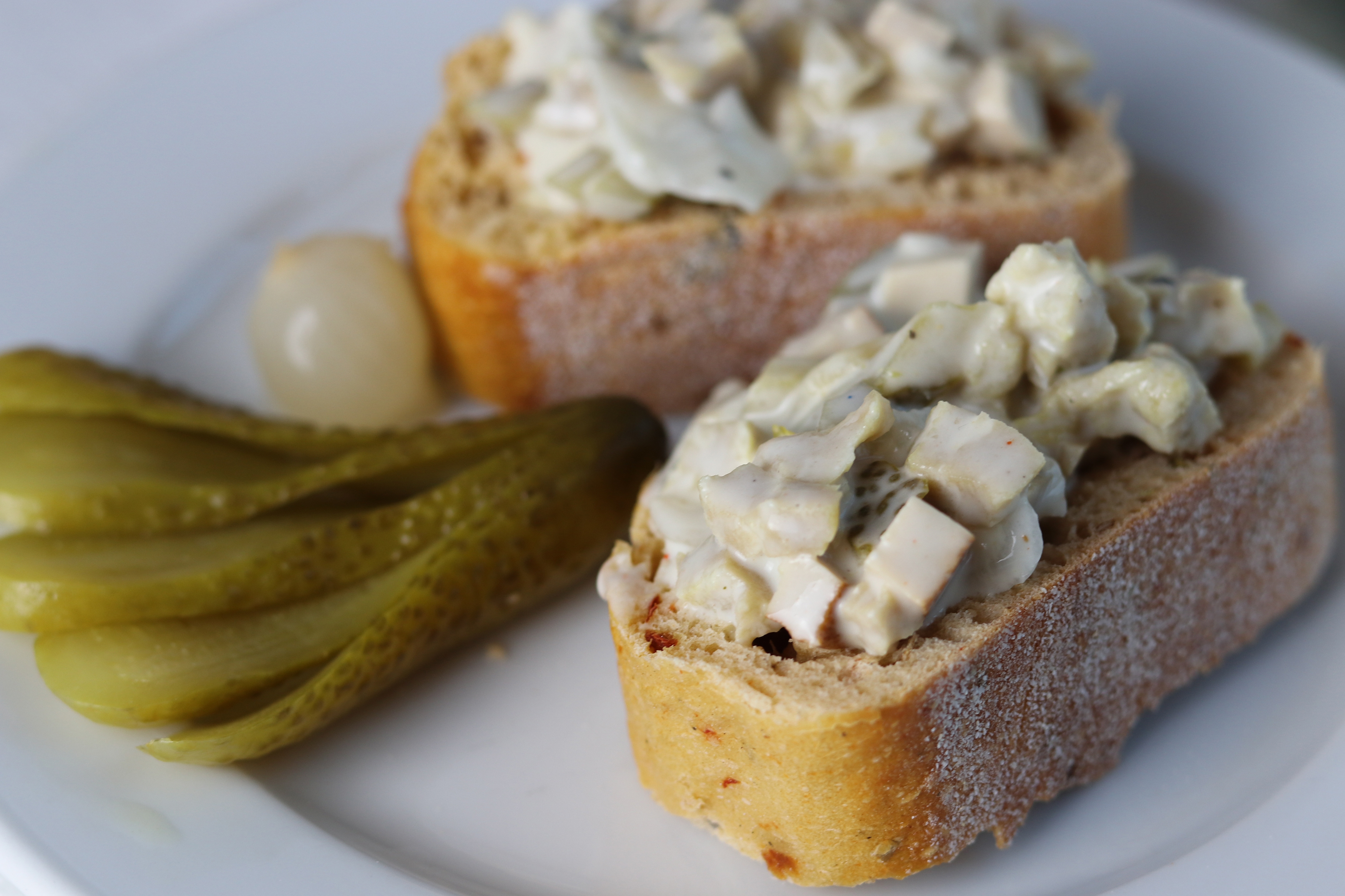 Vleischsalat – authentischer, veganer Fleischsalat – auf selbstgebackenem Kefirbrot