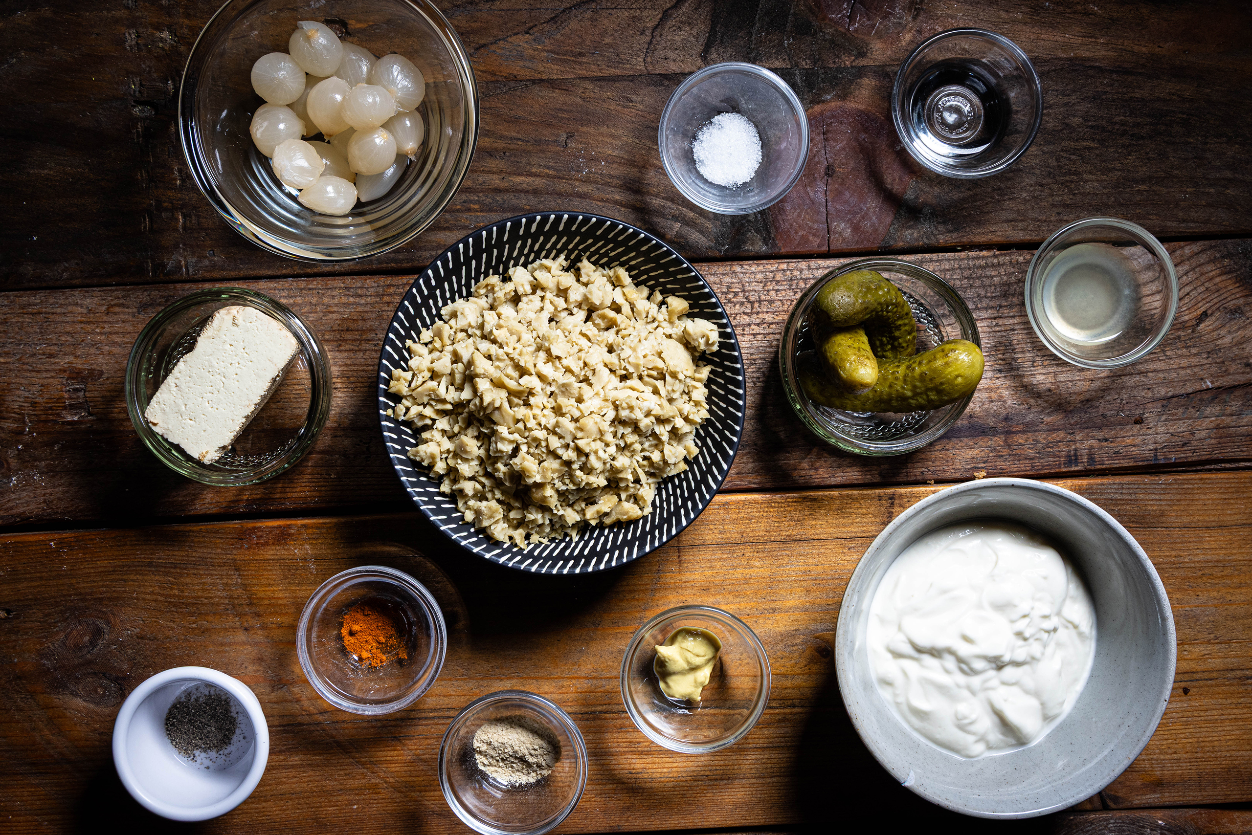 1. Alle Zutaten für das vegane Hühnerfleisch.