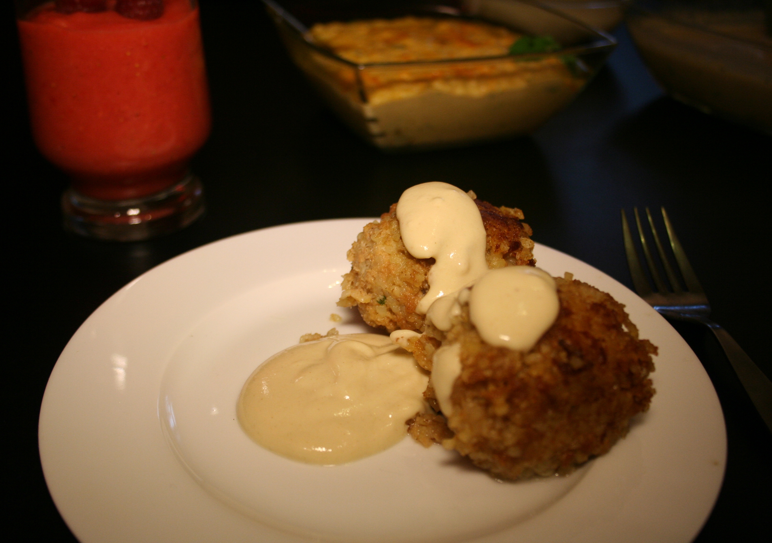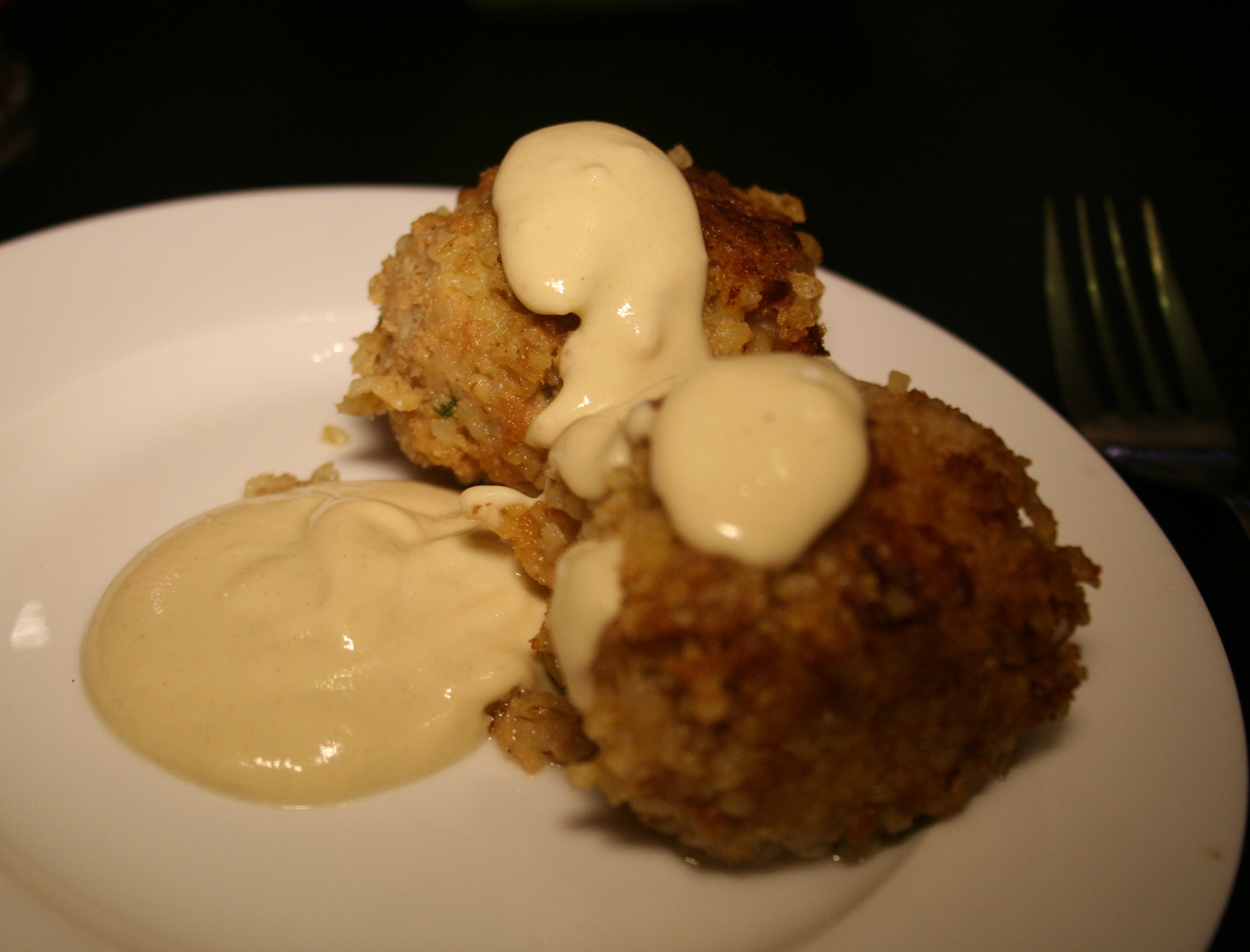Kibbeh mit der Zitronen-Tahini-Sauce servieren.