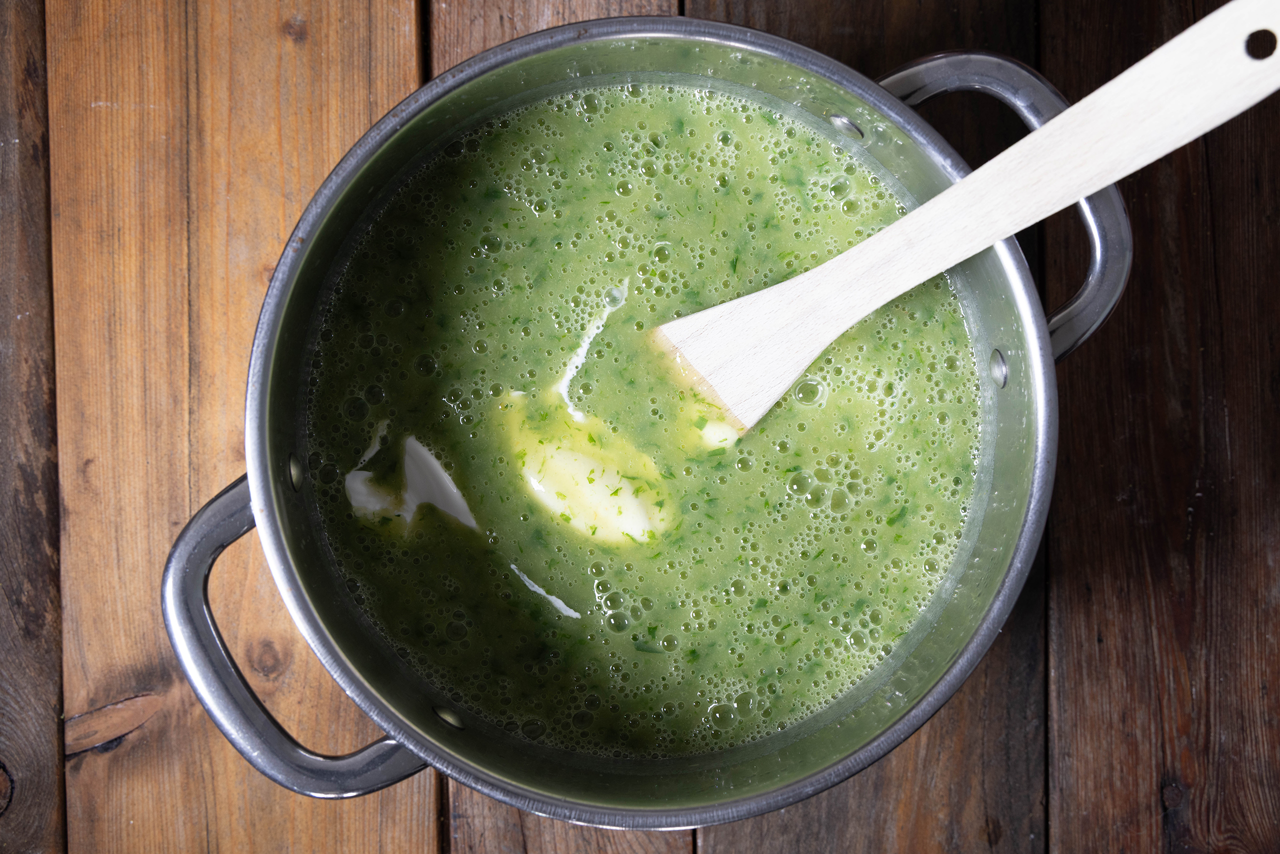 4. Den Bärlauch in die Suppe geben und die Suppe gut durch pürieren