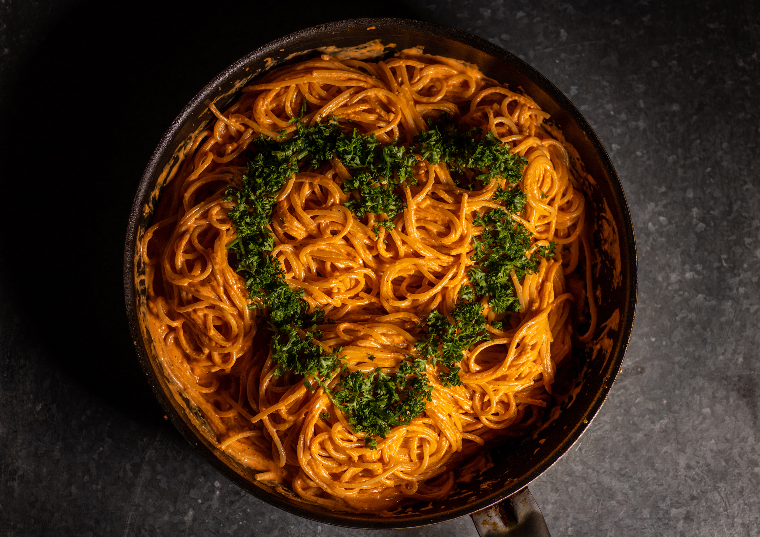 Spaghetti mit der fruchtig-aromatischen Note der Paprika, vereint zu einer schlonzig-cremigen, herzhaft-würzigen Pastasoße.
