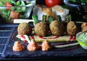 Falafel gefüllt mit Baba Ganoush! Wer liebt keine Falafel oder Baba Ganoush, die köstliche, arabische Auberginencreme? Hier die beste Kombi: würzige Falafel mit innerem, cremigen Baba Ganoush Kern! Mit weiteren, köstlichen Komponeten als Mezze serviert.