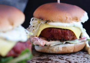 By the way, for a burger, this one is really healthy with 100% fast food taste! It’s patties contain fresh beet roots. Within the coleslaw you can find white and red cabbage, full of vitamins. The sprouts are giving the burger a very healthy and fresh topping.