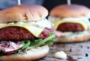 Don’t we all just love burgers? On the German version of dailyvegan, I’ve published over 20 different hearty burger recipes. This one belongs to my personal favourites. My pepper-crusted , bloody cheese burgers. It is just awesome!