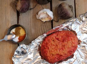 For the patties mix all dry ingredients together in a bowl. Use a blender to mix all wet ingredients and the beet root thoroughly.