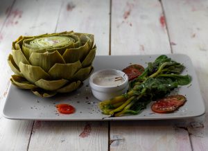 Am Tisch zusammen kommen und gemeinsam speisen. Was gibt es Schöneres? Zum Beispiel mit diesem leckeren Gericht mit köstlicher, aromatischer Artischocke. Gemeinsam die zarten Blätter in einen leckeren, leicht süßen, würzigen Waldhonig-Senf-Dip tunken. Dazu frisch gedünsteter säuerlich-salziger Portulak.