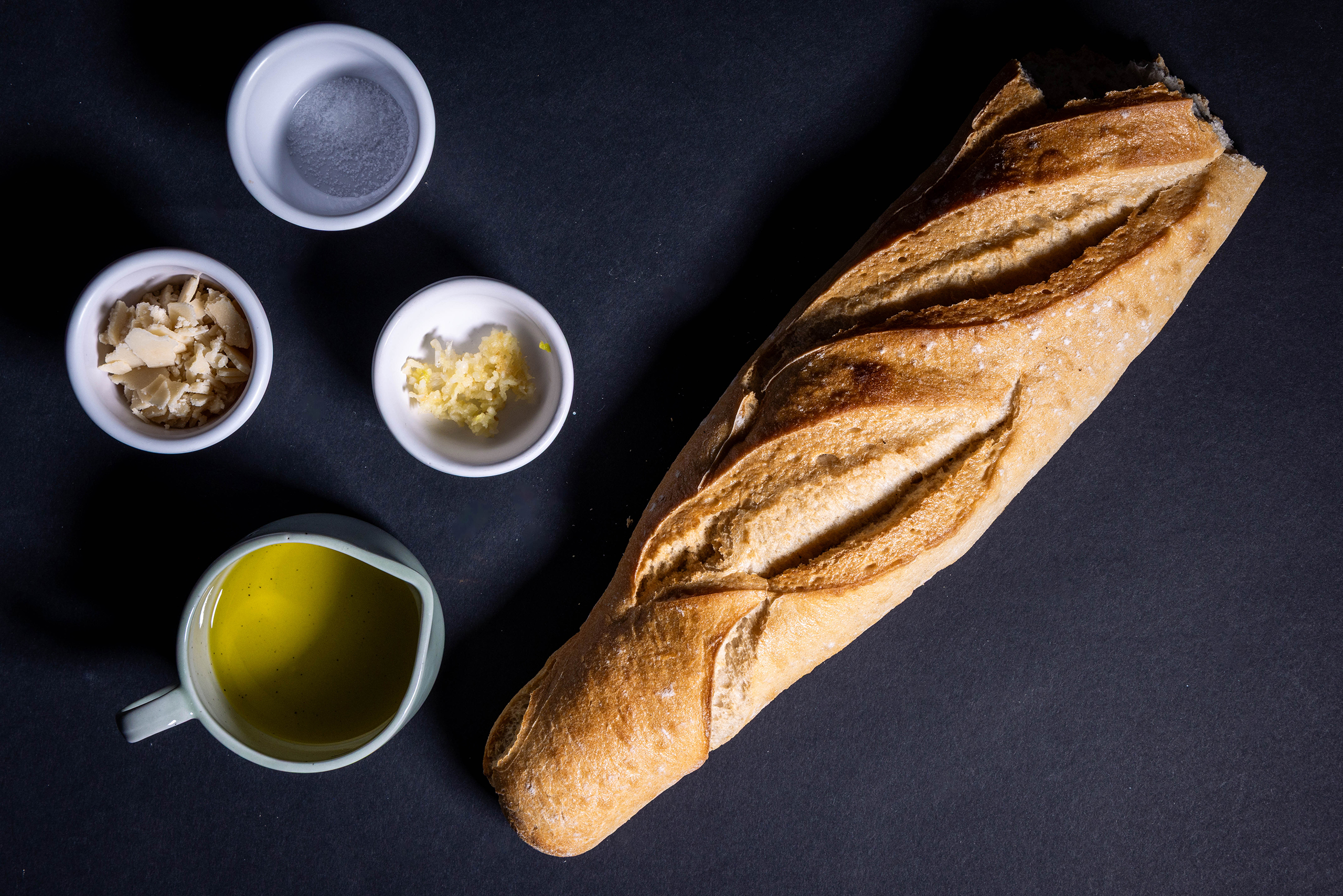 • 1/2 Baguette oder 2 Brötchen, altbacken, gewürfelt