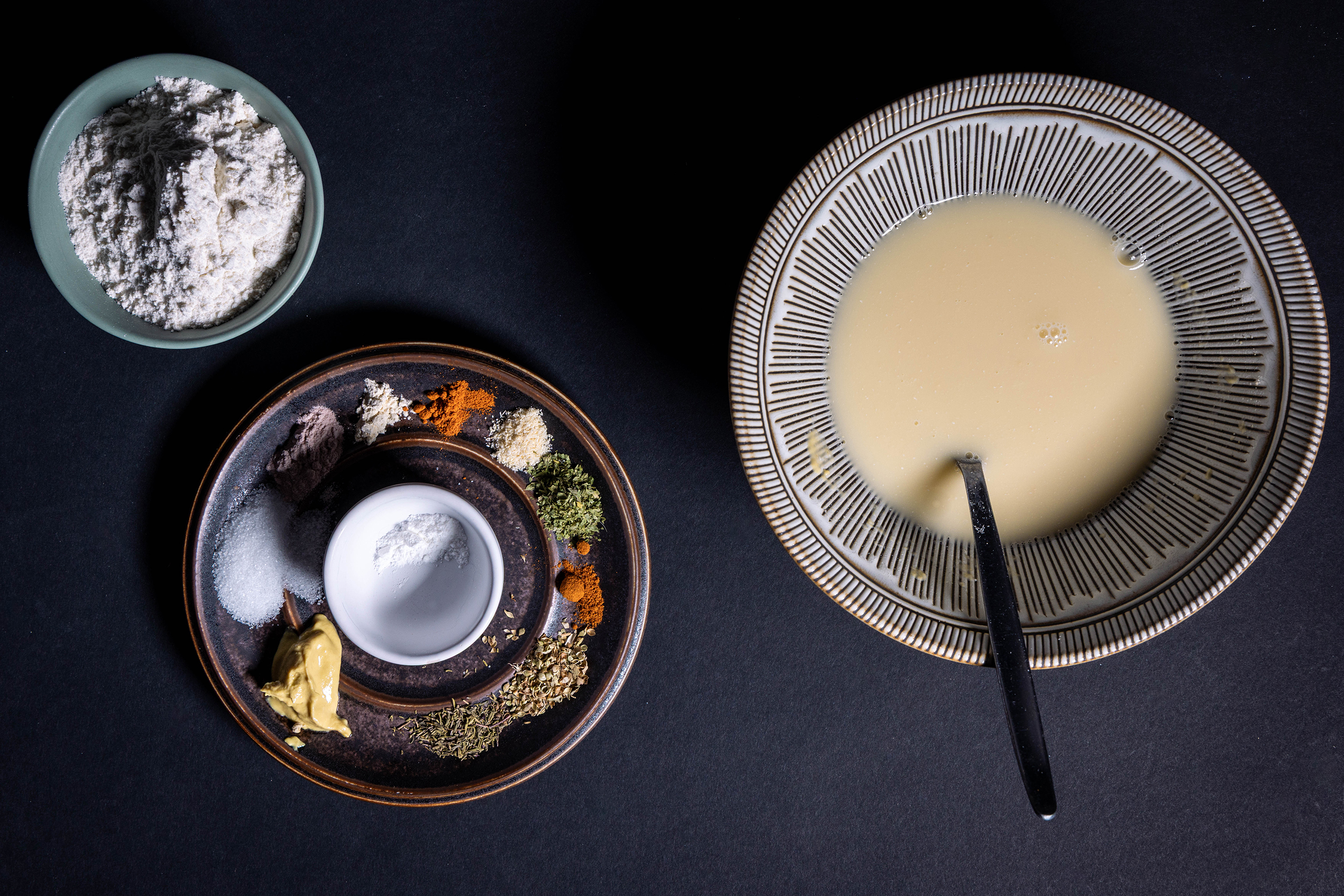 3. Alle Zutaten für die Panade für die Chicken Strips.