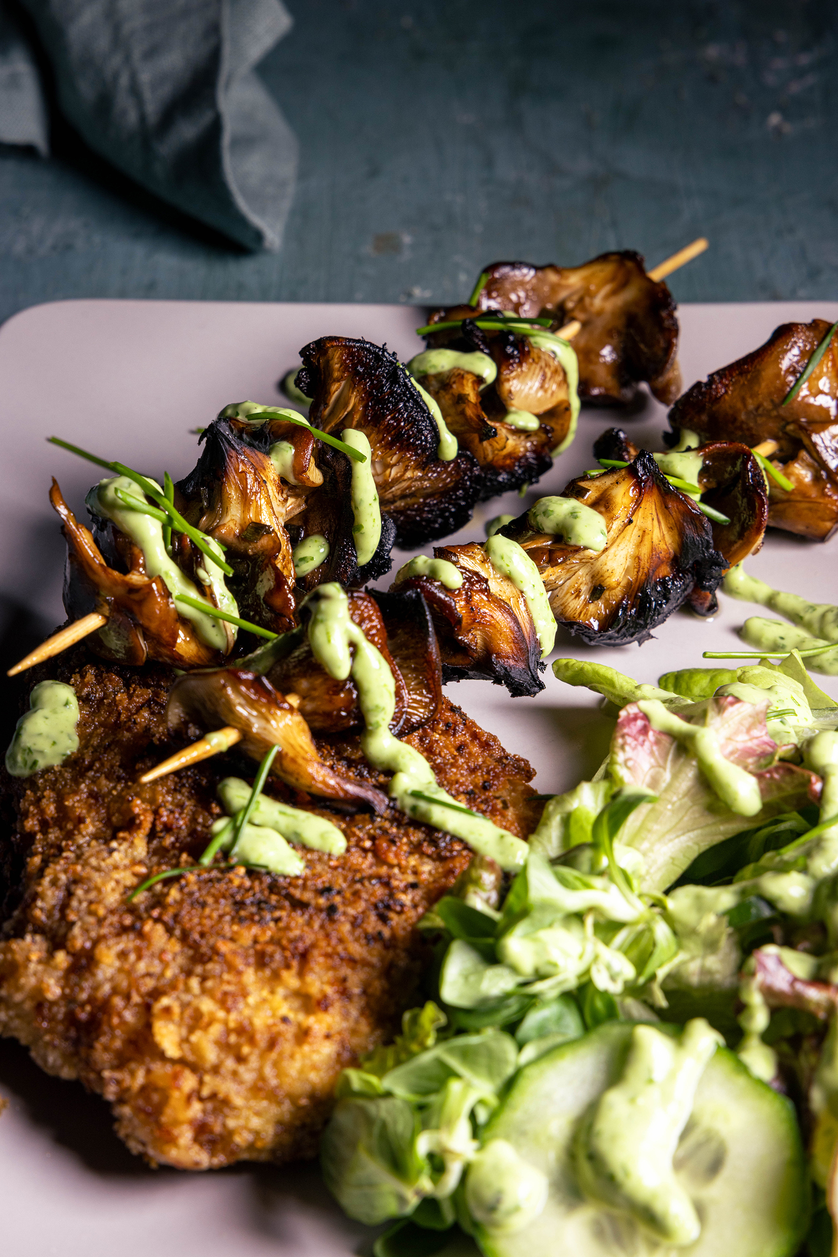 Austernseitlinge am Spieß mit Zitronenaioli