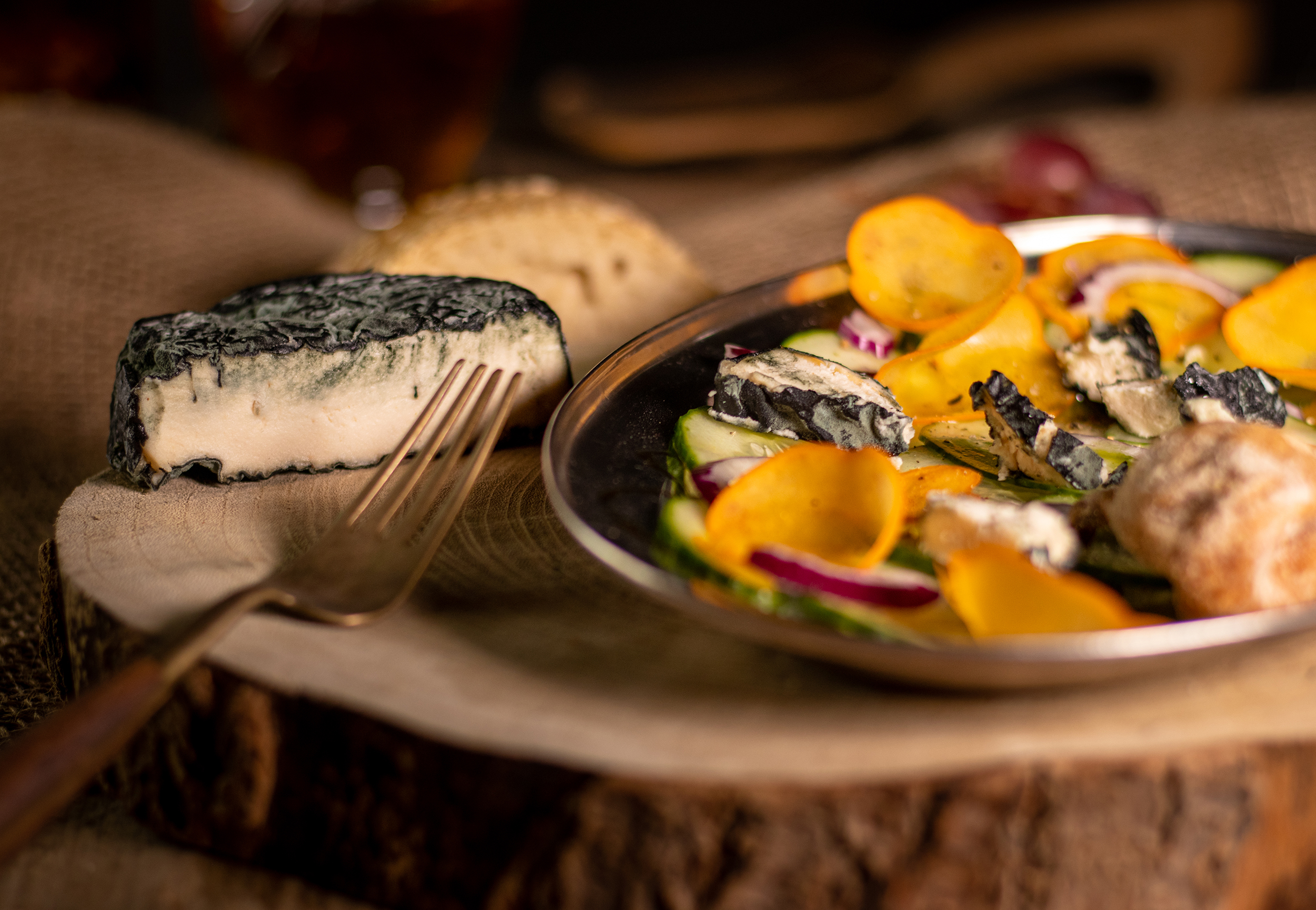Auf den Fotos zu sehen: vegane, gereifte Weichkäse mit Camembertkulturen, Roquefortkulturen und einer milderen Weißschimmelkultur für die veganen Ziegenkäse.
