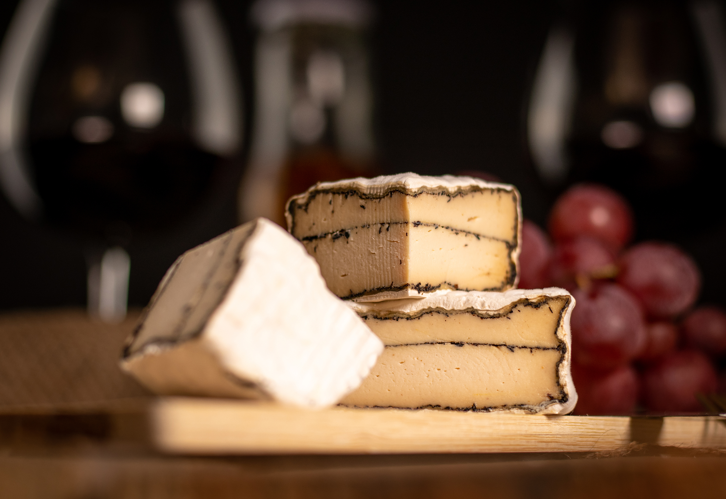 Veganer Camembert mit Ascheschicht, diese addiert ein tiefes, rauchiges Aroma