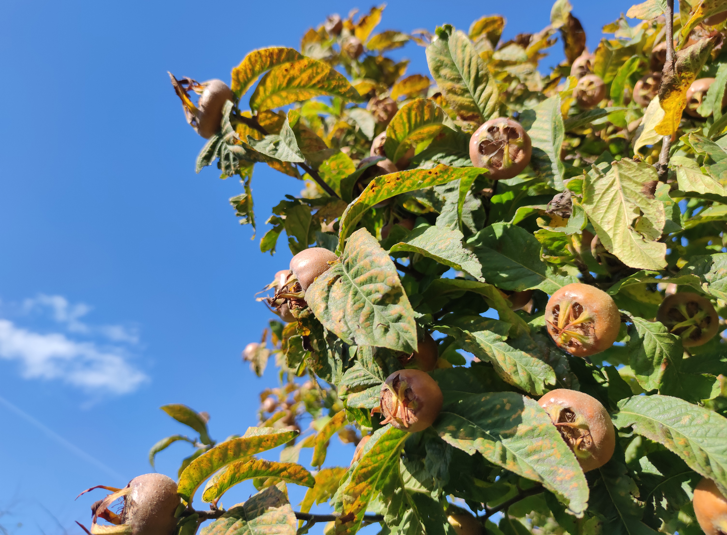 Und hier ein paar Fotos zur Zubereitung, sowie Fotos frischer Mispeln, die Ihr für die Mispeltörtchen braucht. Mehr dazu, wie Ihr Mispeln erkennt und wie und wo sie wachsen, habe ich in meinem Rezept für Mispelchutney aufgeschrieben.
