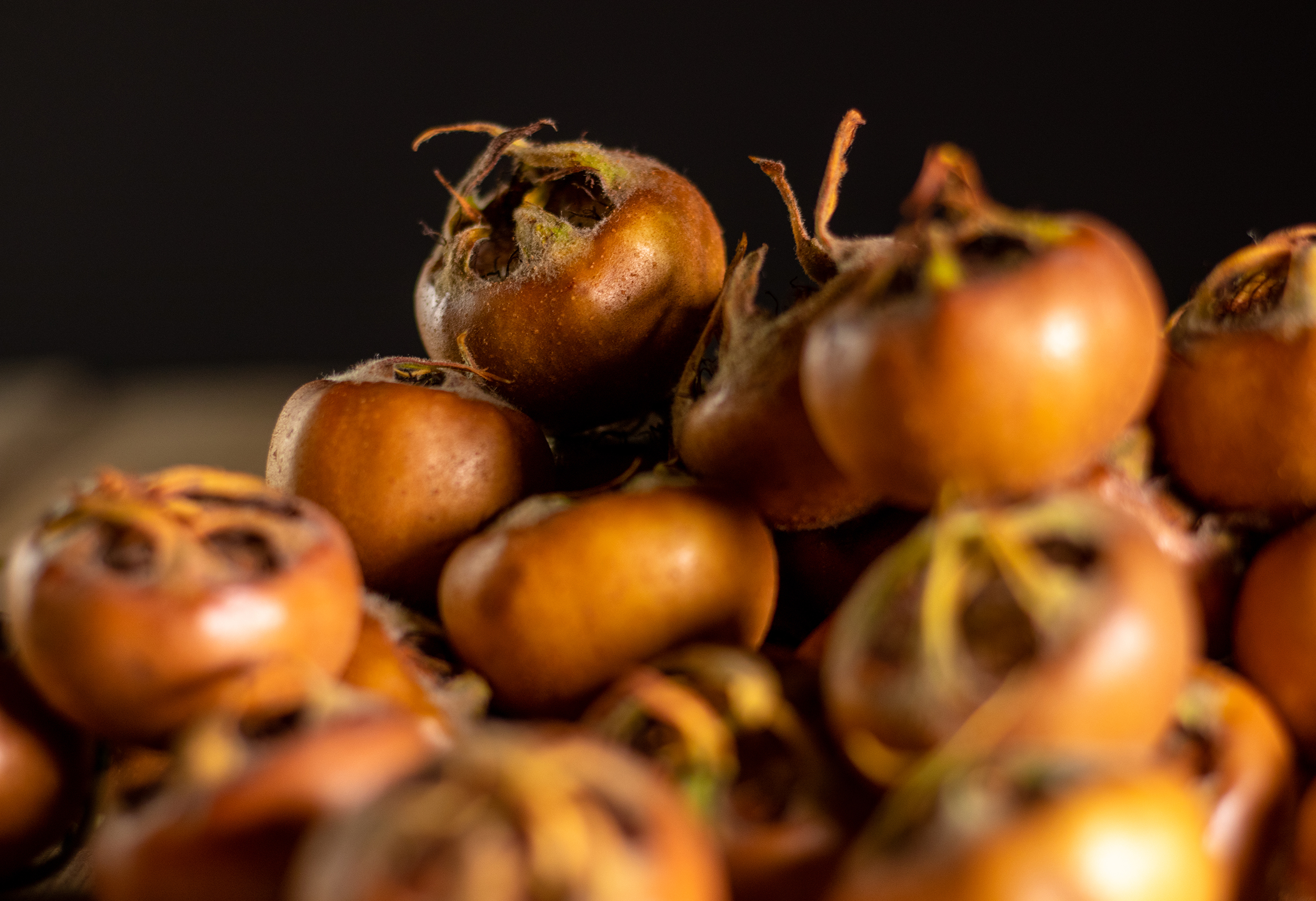 Unter den Wildfrüchten im November ist die Mispel meine absolute Lieblingsfrucht. Ihr feines, liebliches Aroma passt einfach perfekt in die dunkle Jahreszeit und zu vielen Süßspeisen. In meinen Mispeltartes mit Baiserhaube macht sie sich besonders gut!