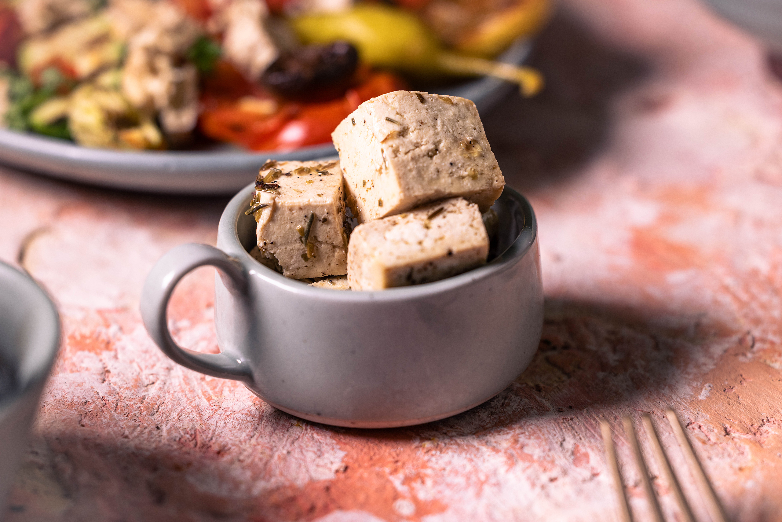 Mein Veta ist eine schnell und einfach gemachte Alternative zu Feta oder Schafskäse. Er ist vollmundig, würzig und aromatisch und kann in allen Rezepten anstelle von Feta genutzt werden. Eine köstliche, rein pflanzliche Alternative.