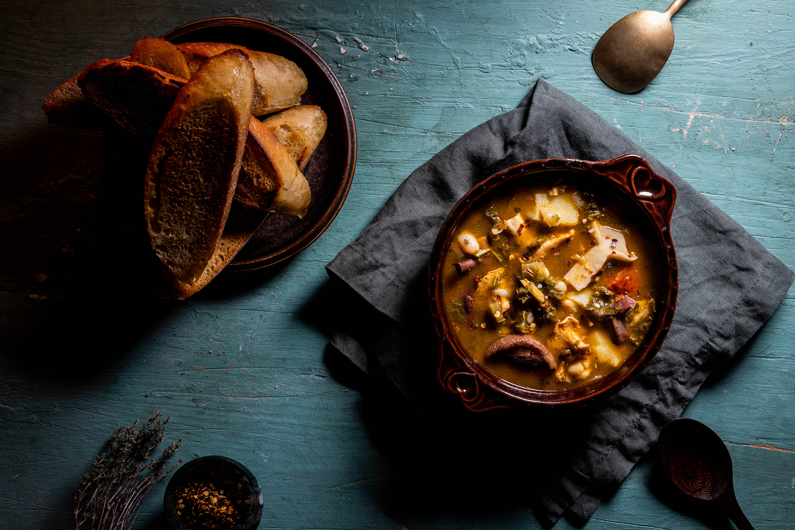 Semmel-Stoppelpilz-Eintopf mit Grünkohl und weißen Bohnen – den Herbst kulinarisch feiern