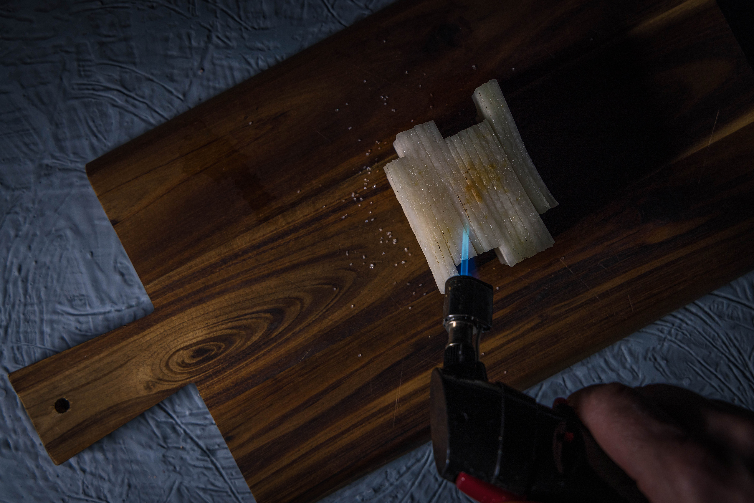 - Den Kohlrabi vorsichtig flambieren.