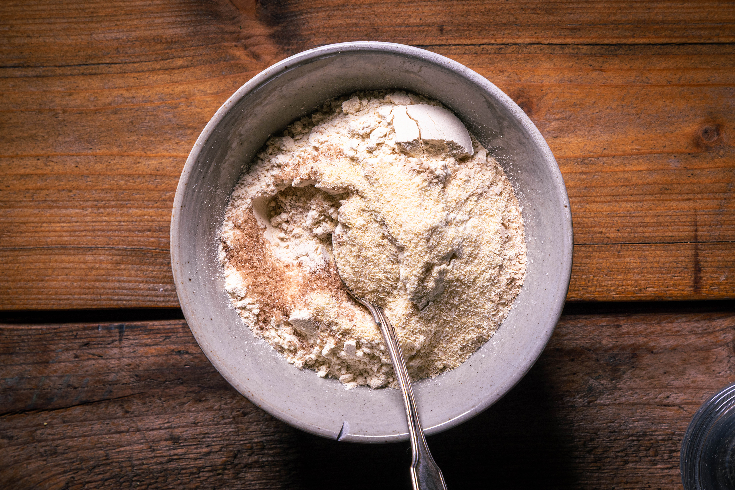 - Seitan-Fix mit den Hefeflocken, dem Zwiebelpulver, Rauchsalz und Salz für die Füllung vermischen.