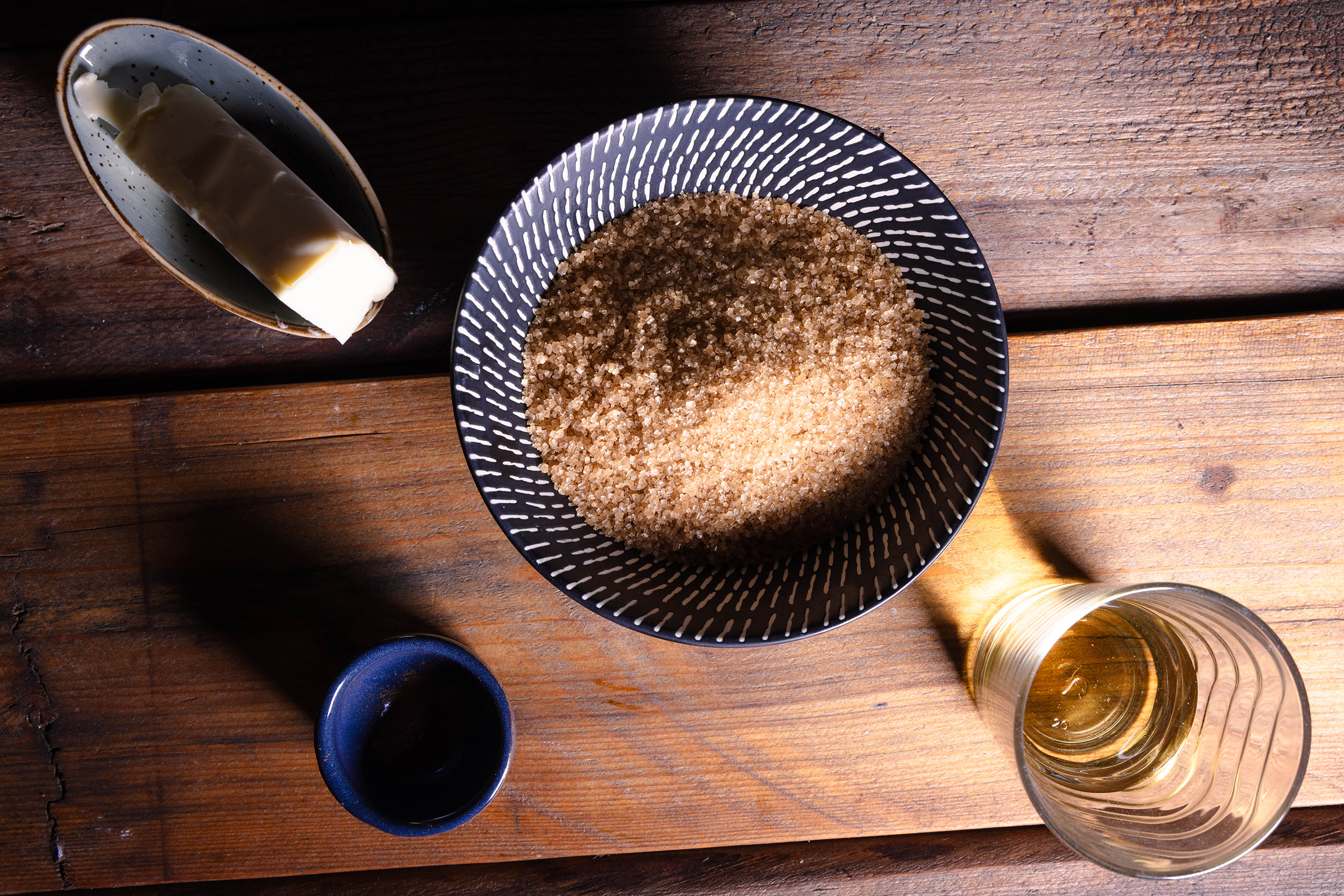 - Vegane Butter, braunen Zucker, Cidre und Zimt in einen kleinen Topf geben.