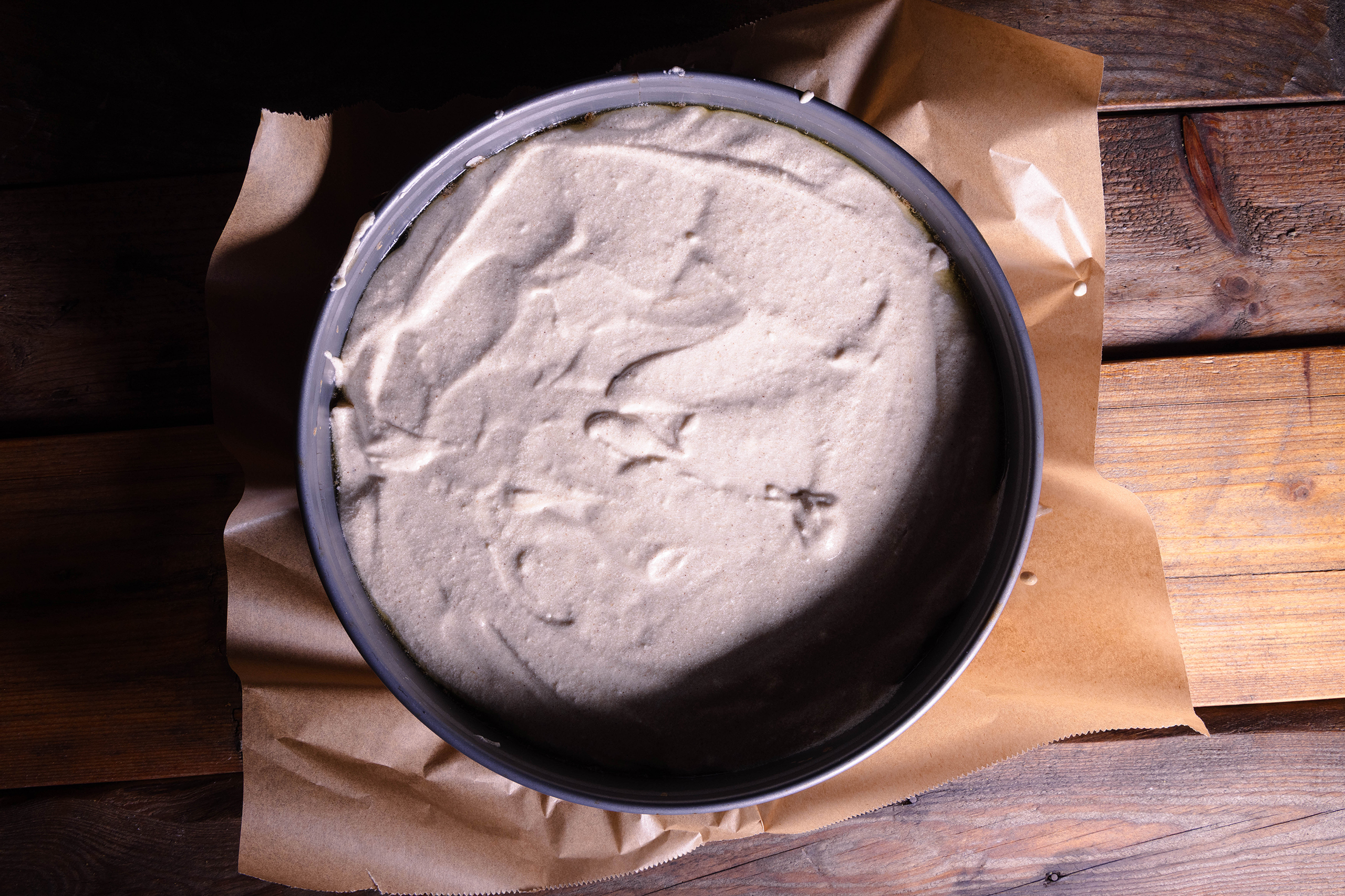 - Eine Springform (ca. 26 cm) mit Backpapier auslegen.
