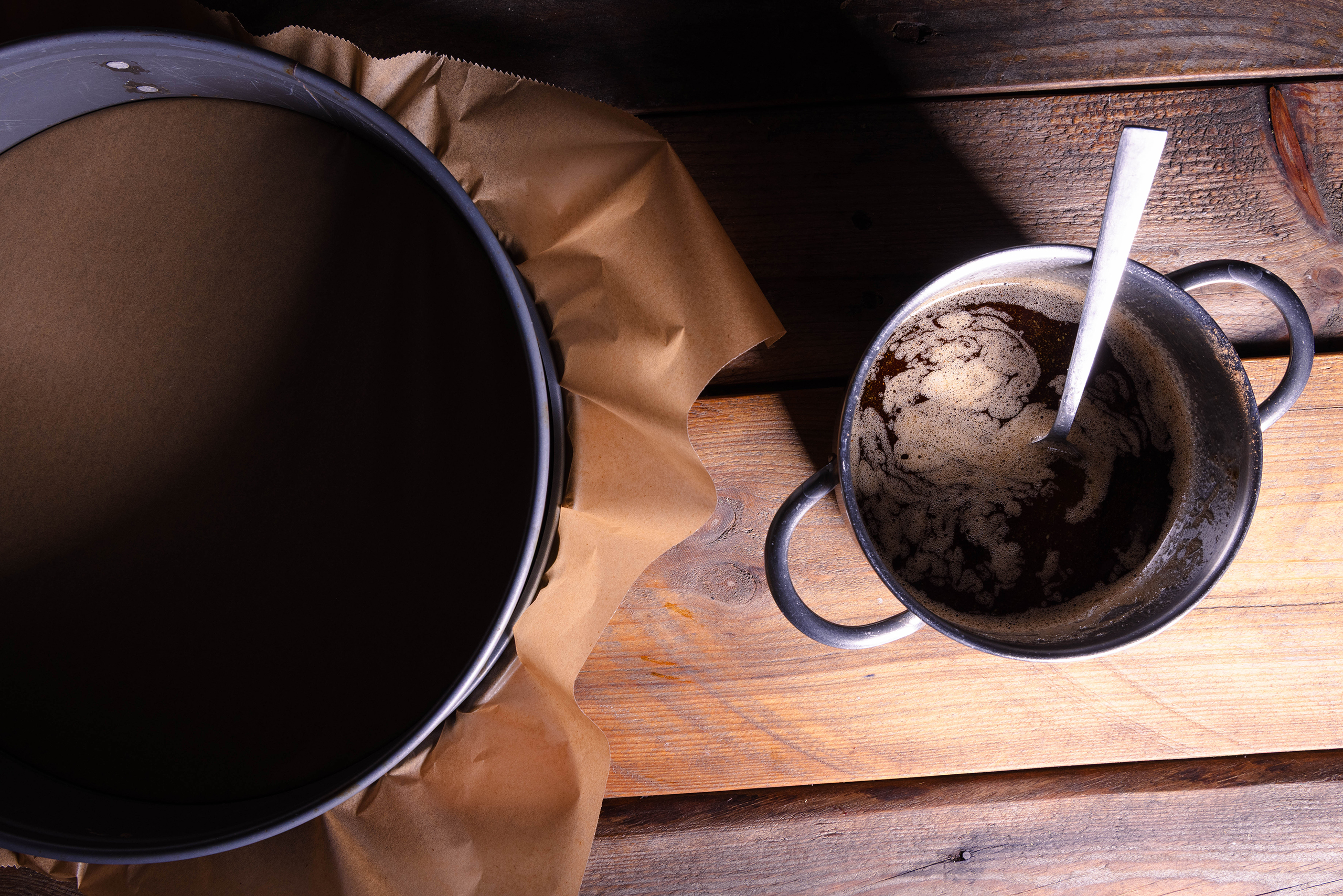 - Das Karamell in die Springform gießen und verteilen.