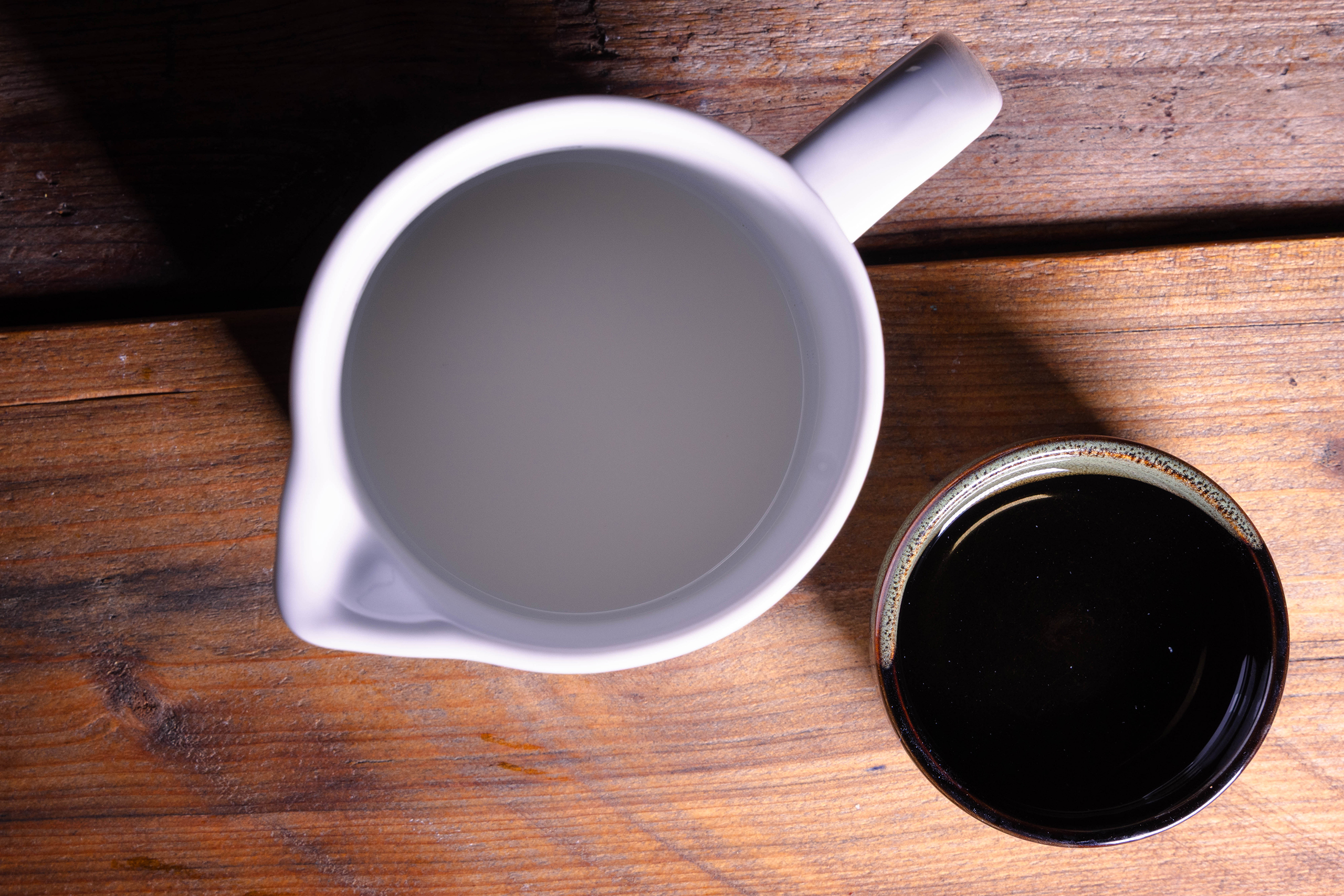 - Den Apfelessig in die Sojamilch geben, nicht umrühren und 5 Minuten stocken lassen.