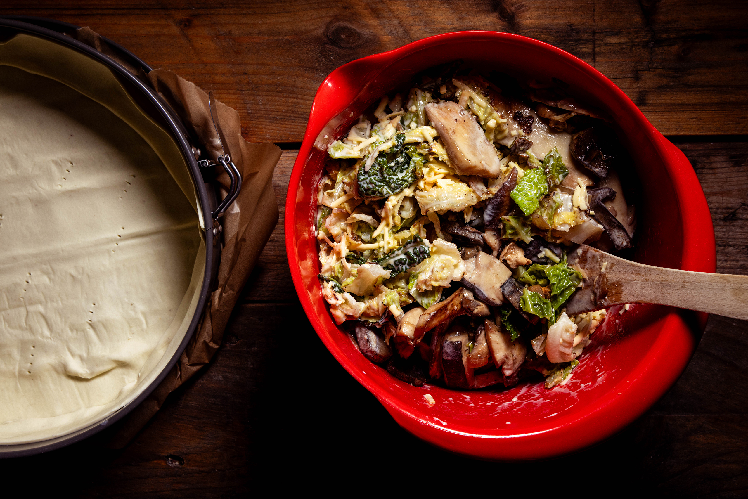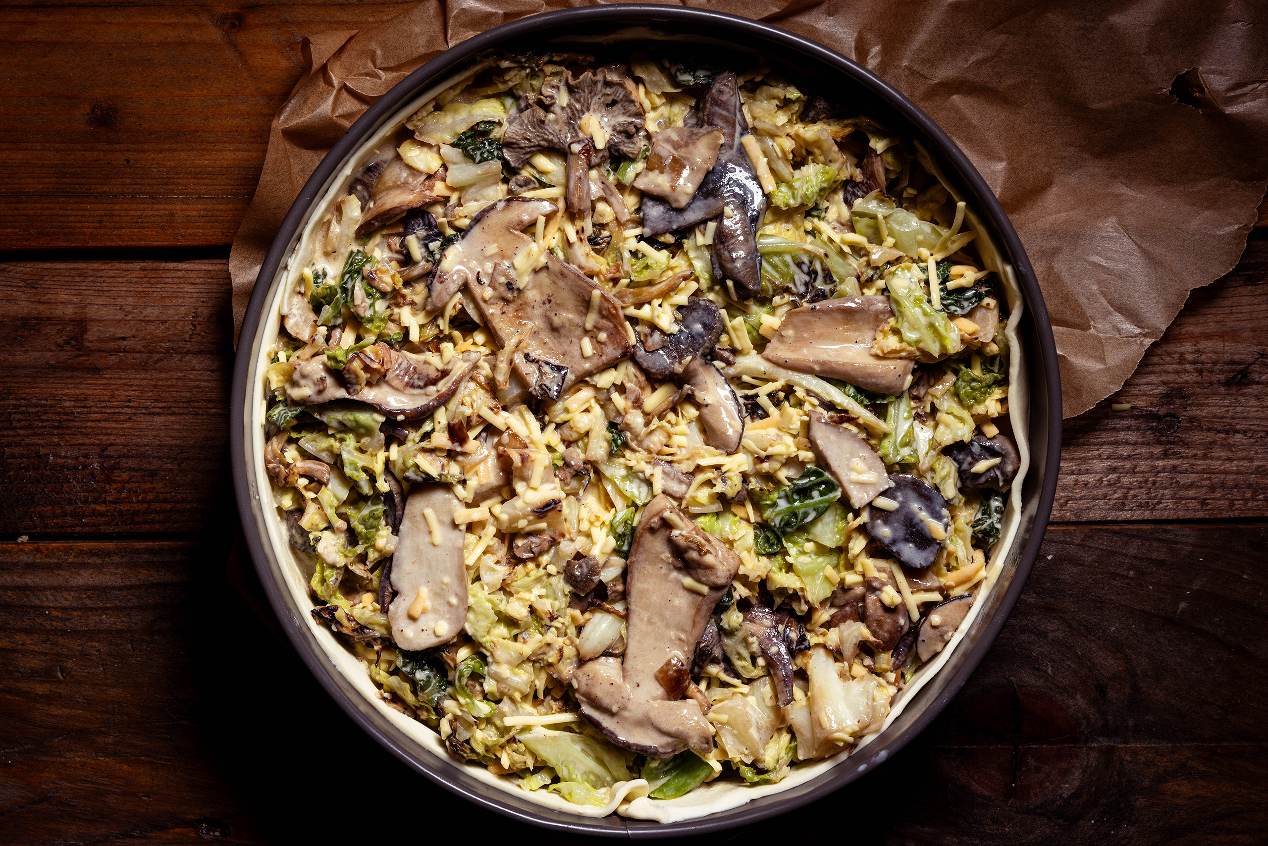 Vegane Waldpilz-Wirsing-Quiche – die Zubereitung in Bildern