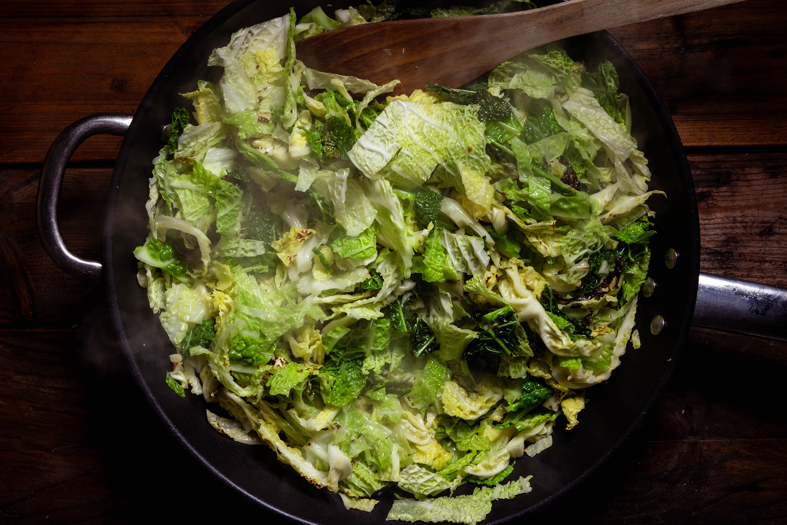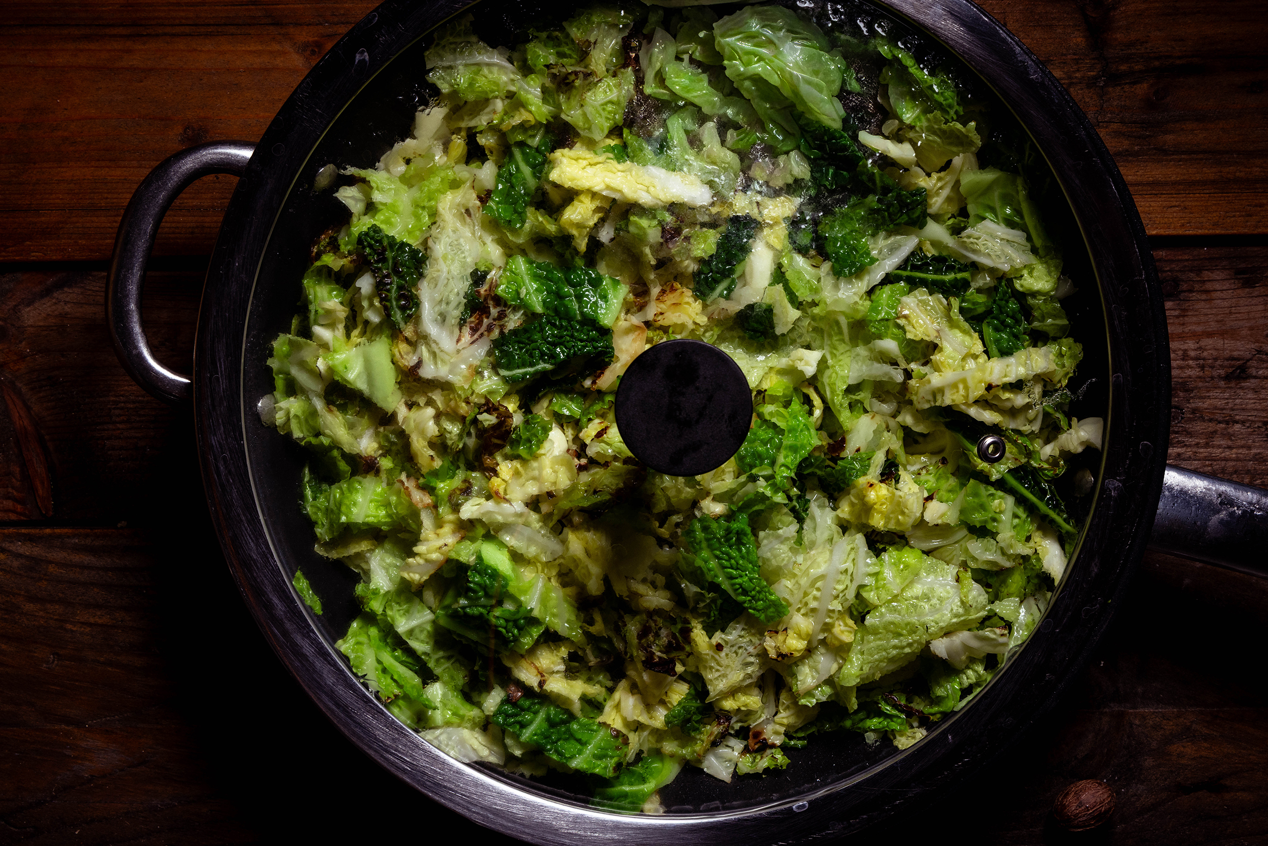 - Zum Schluss auch den gebratenen Wirsing und die Pilze unterheben.