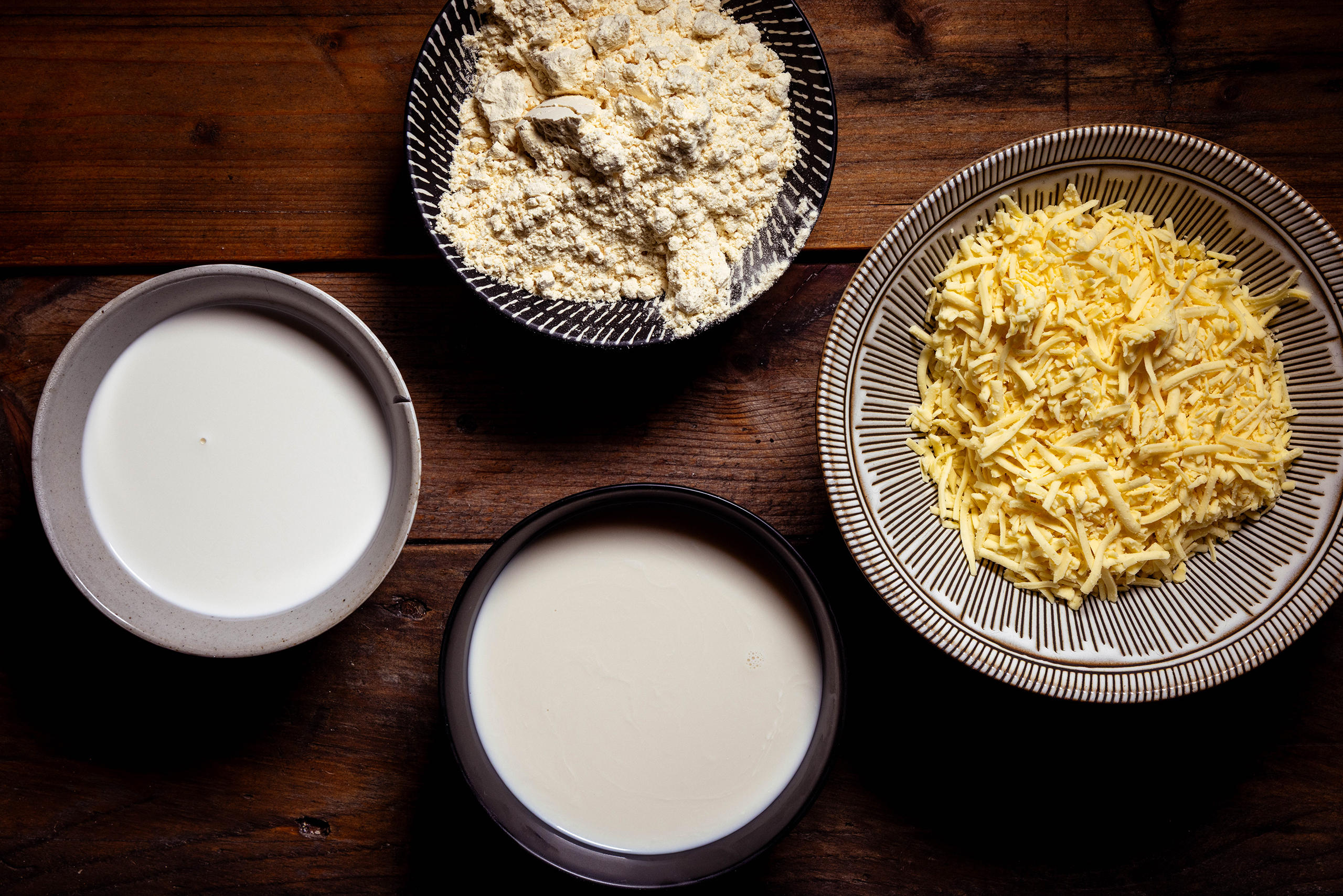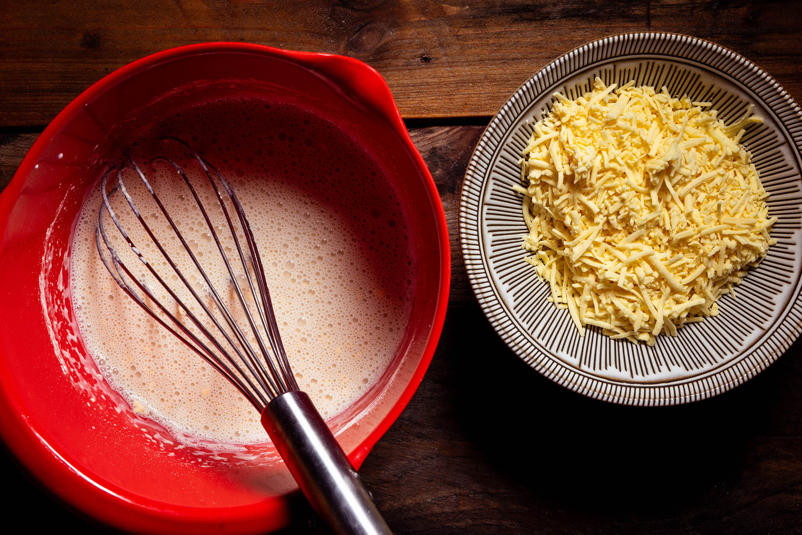 - Das Kichererbsenmehl mit der Sojamilch und veganer Sahne anrühren. Gründlich rühren, bis keine Klümpchen mehr vorhanden sind.