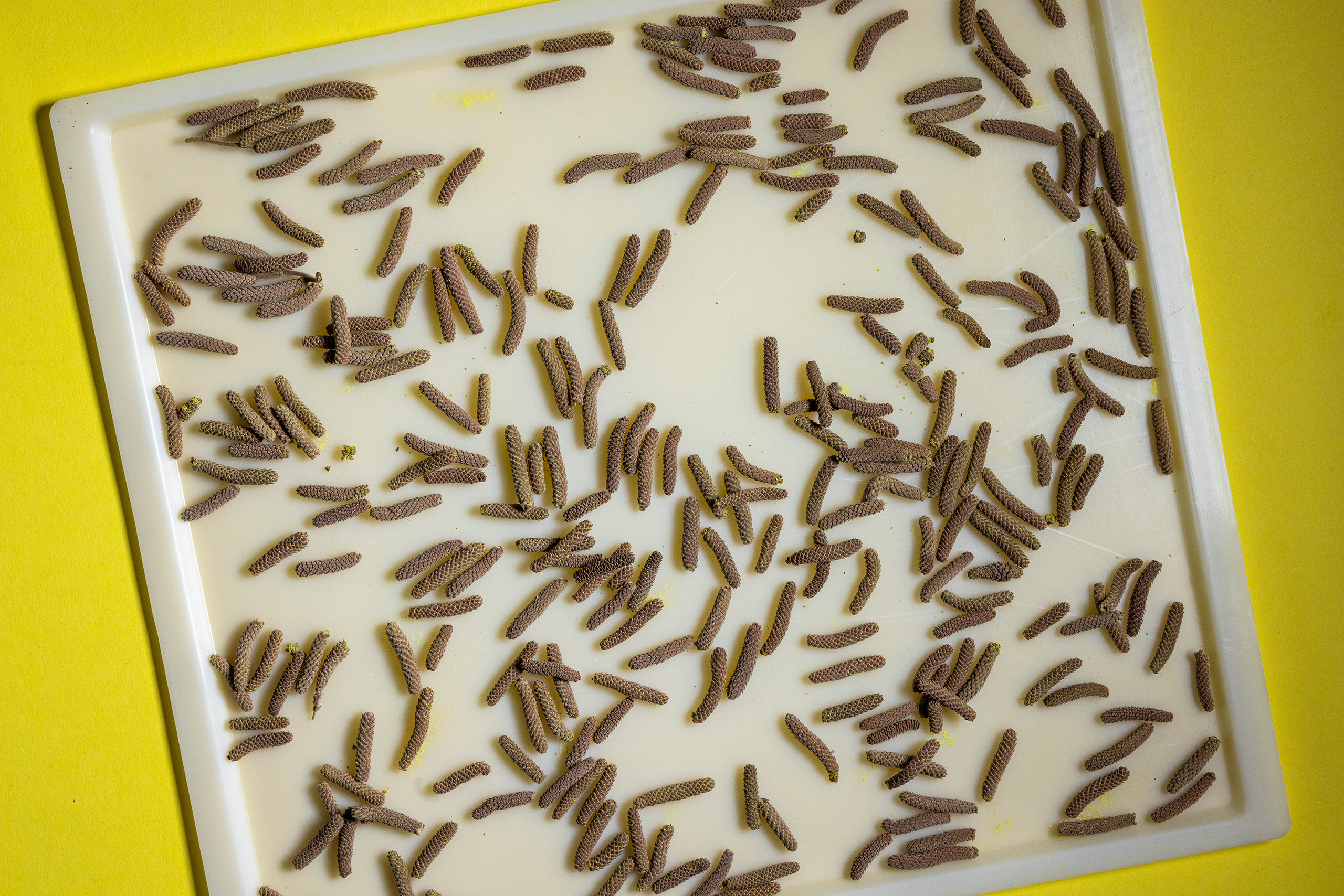 3. Die getrockneten Haselkätzchen zu Mehl zermahlen.