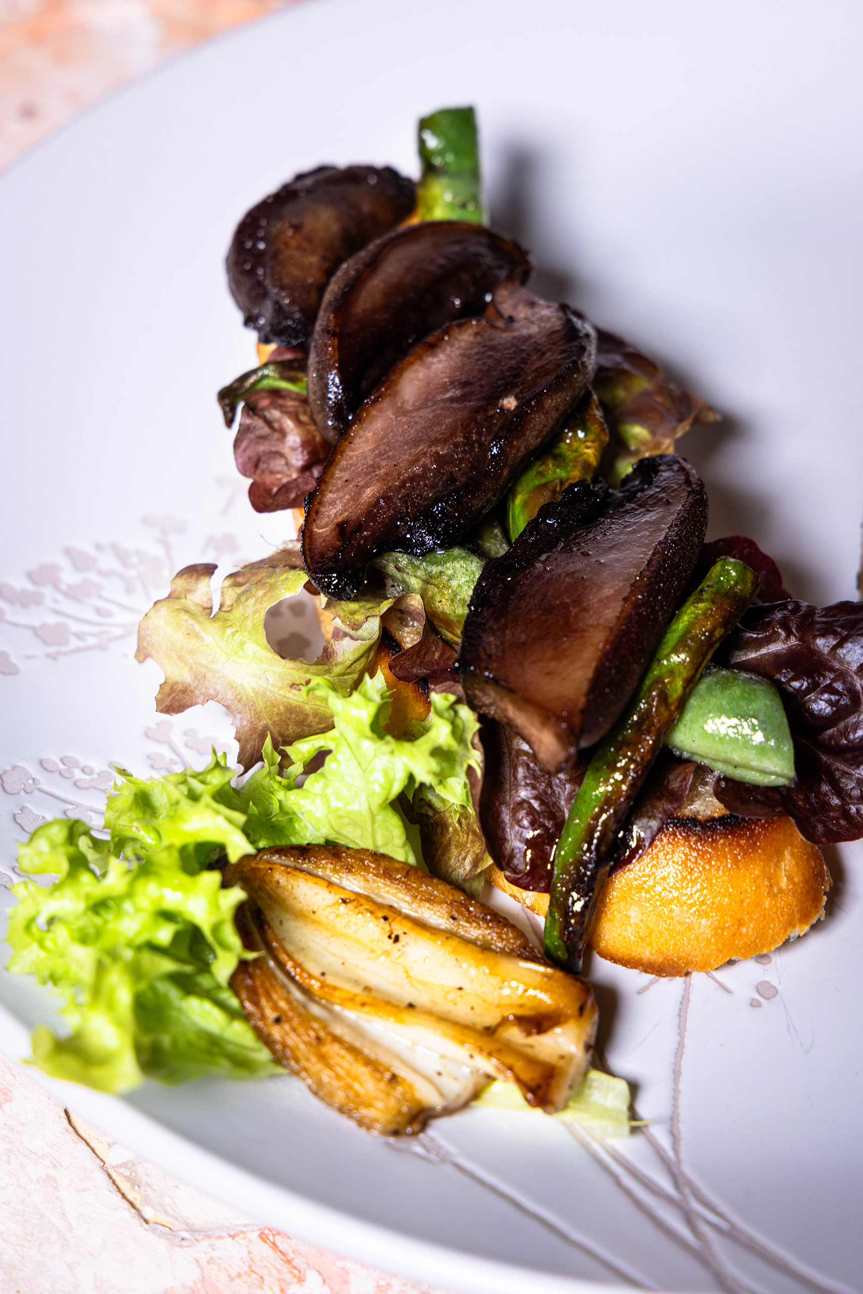 Gebratener Leberreischling mit grünen Bohnen auf Stulle